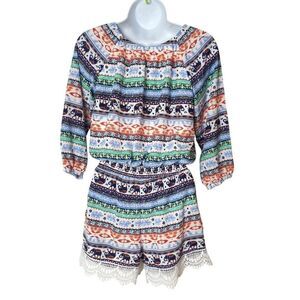My Michelle Girls Romper Sz L Elephant Pattern Lace Trim Cottagecore Whimsy