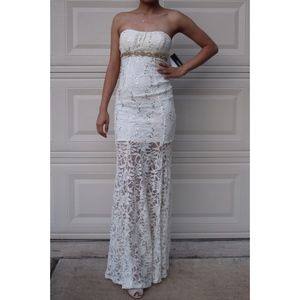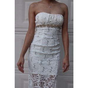 This can be your homecoming or prom dress. i got it for my younger sister because of its so many great reviews. However she ended up not going so i am selling it. It is white with these gold flecks. You will shine in this classy piece of fashion.
