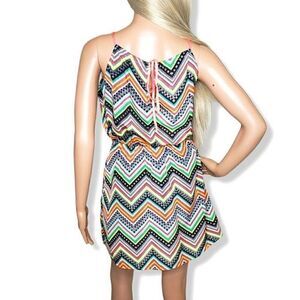 This is an adorable, size small, spaghetti strap chevron patterned dress:) This dress is a lovely pop of color for the summer and would look fabulous on vacation 😎
