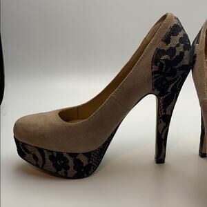 MyStock Faux Suede Platform Heels w Black Lace Detail Sz 7