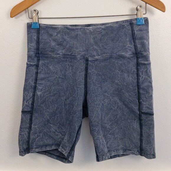 Mya & Nu Navy Blue Bike Shorts – Wrinkle Print, Side Pockets, Size M