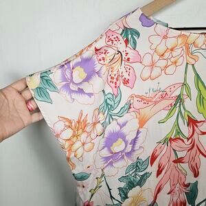 women's size sz large sleep shirt tunic cream ivory pink orange lavender green flowers botanical