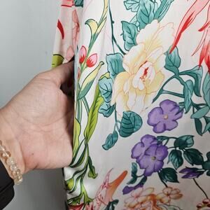 Mya Satin Floral Slip Midi Dress Nightgown L Beige Multicolor Botanical
