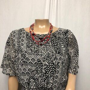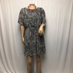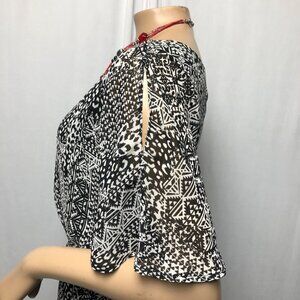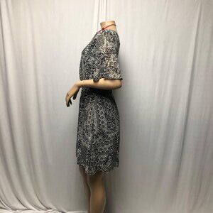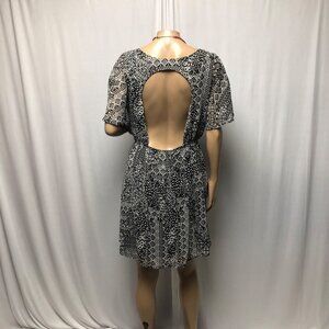 Myan Dress Womens Size Large Black White Open Back Sheer Flutter Sleeves