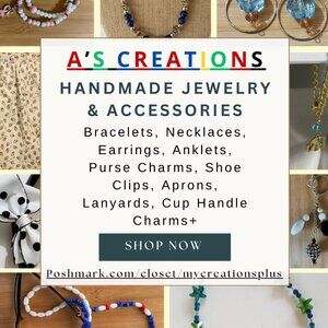 Hi, I am Adell. My poshmark closet is mycreationsplus. Visit my closet for handmade items created by me. My passion is jewelry-making and sewing some accessories. In my closet you will find jewelry for all and other items from my household. I do not do any outside sourcing.