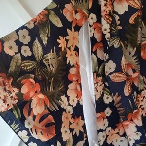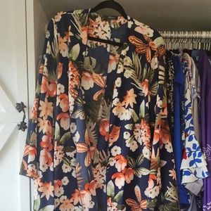Blue floral Kimono sleeve robe. Dress up a pair of jeans or wear over a cute dress. Light weight.
