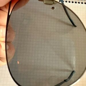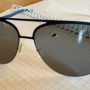 These frames are crafted from lightweight stainless steel and acetate, offering superior comfort and durability. They are meticulously handcrafted in Germany. Some superficial scratches on both lenses. Frames show a tiny bit of wear at hinges.