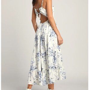 Mykonos Mood Ivory Floral Print Tie-Strap Tiered Midi Dress Lulus