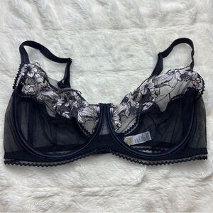 This sensual, sheer balconette bra offers flattering underwire structure and support. The black mesh and floral lace appliqué details make it equal parts pretty and edgy. By Myla.