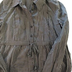 Mylie Cyrus Max Azria Top Juniors Medium Cinch Waist Roll Tab Sleeves Black Striped, good condition, smoke and pet free home