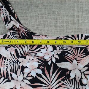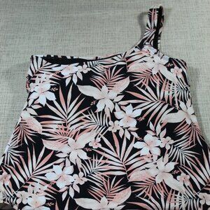 Mynah One Shoulder Tropical Black and Pink Tankini Top