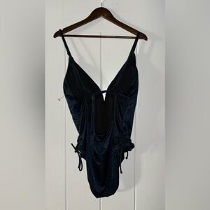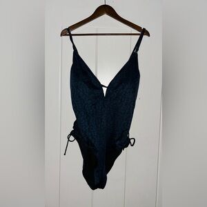 Mynah Women One Piece Cut Out Swimsuit XXL Blue Beach Vacation Tropical NWT