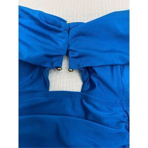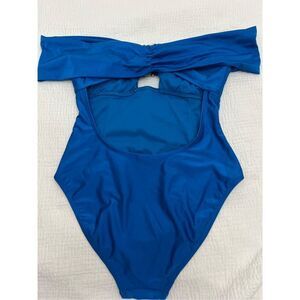 Mynah Women's Off Shoulder Moderate Coverage One-Piece Swimsuit Blue Size Medium