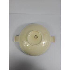 This vintage Myott Son & Co serving dish from England features a beautiful blue flower stripe pattern on a round porcelain, china, and ceramic material. The hand-painted dish has a glossy finish and is perfect for serving vegetables or other side dishes. With a backstamp print and a production style of art pottery, this rare piece is a great addition to any collection. The item measures 10 inches in length and 3 inches in height, with handles for easy carrying. It's perfect for all occasions and adds a touch of English, flower, and floral themes to any table setting.