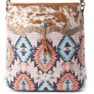 Myra Bag Cotton Rug, Genuine Leather and Upcycled Canvas "Purpose" Shoulder Bag