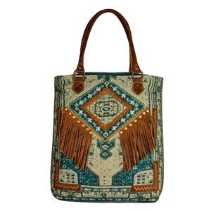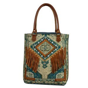 Myra Bag Handmade Angelica Tote Bag Bag Upcycled Canvas & Cowhide Leather