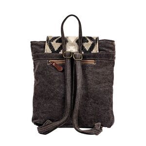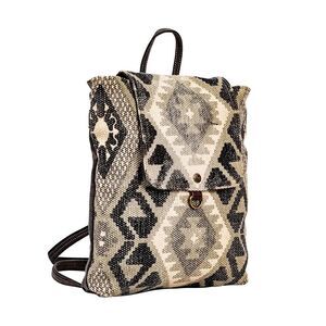 Myra Bag Handmade Arrowhead Backpack Upcycled Canvas & Cowhide Leather