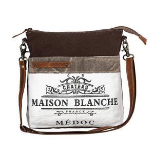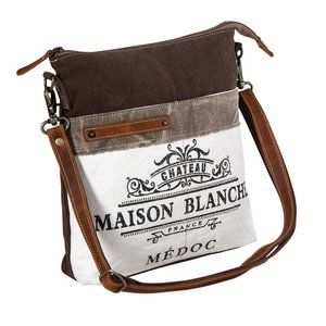 Myra Bag Handmade Chateau Shoulder Bag Upcycled Canvas & Cowhide Leather