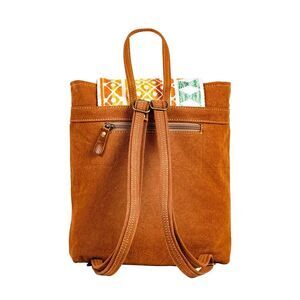 Myra Bag Handmade Chenoa Backpack Upcycled Canvas & Cowhide Leather