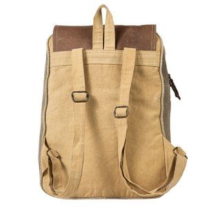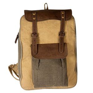 Myra Bag Handmade Chesternut Backpack Upcycled Canvas & Cowhide Leather