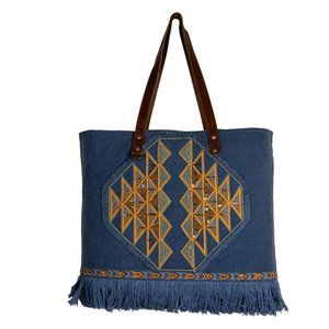 Myra Bag Handmade Ember Tote Bag Bag Upcycled Canvas & Cowhide Leather