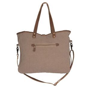 Sourced from India, each item is unique and will vary slightly. Beautifully simplistic, chic design, leather detailing. This bag is made of up-cycled materials including canvas and leather. Natural vegetable tanning processes are used. Handmade with care, this handbag is hand-crafted.