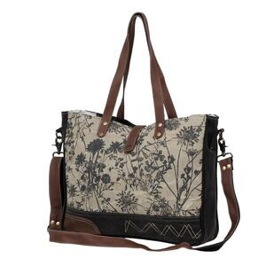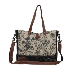 Myra Bag Handmade Mystique Messenger Bag Upcycled Canvas & Cowhide Leather