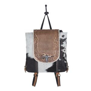 Myra Bag Handmade Padauk Hand Tooled Bag Upcycled Canvas & Cowhide Leather