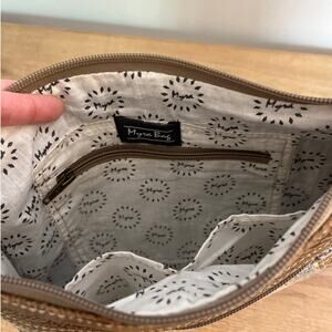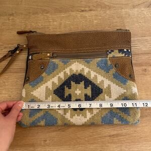 Myra Bag Leather Woven Cotton Canvas Aztec Wristlet Bag