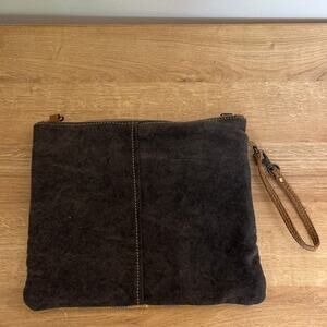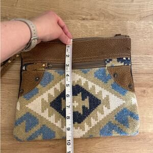 Myra Bag Leather Woven Cotton Canvas Aztec Wristlet Bag Boho Western Festival