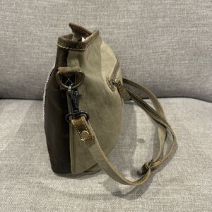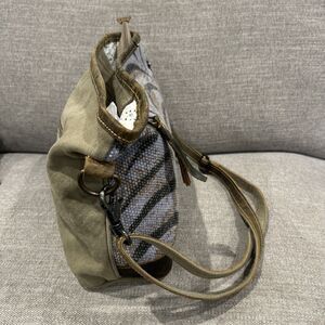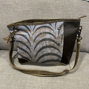 Myra Bag Messenger Cotton Leather Green Brown Blue Pockets Hand Bag Purse