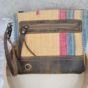 Myra Bag Mid Summer Pouch Wristlet Leather Cotton Boho