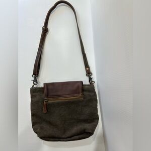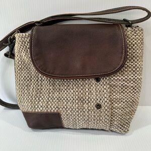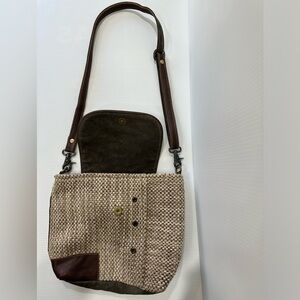 Myra Bag Rug Leather and Canvas Crossbody Shoulder Bag EUC