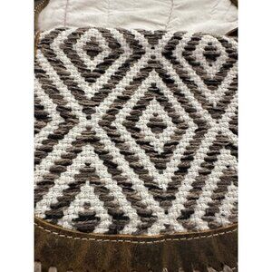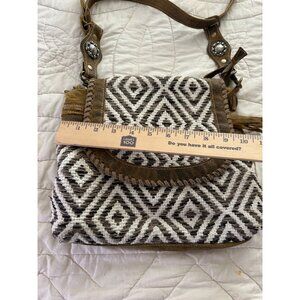 Myra Bag Sand Weaver Shoulder Purse Upcycled Canvas & Aged Leather Boho western