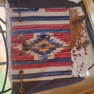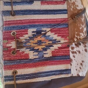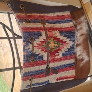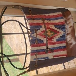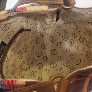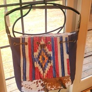 Myra Bag Southwest Leather CottonCarve Bucket Pockets Shoulder Bag NWOT