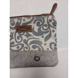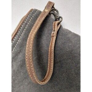 The Myra Bag Wristlet/Clutch is a stylish and versatile accessory perfect for any woman on the go. Made of leather and cotton in a trendy gray color, this small clutch features a wristlet strap for easy carrying. The Western-inspired design adds a touch of flair to any outfit, making it a must-have for any fashion-forward woman. Perfect for a night out or a day on the town, this clutch is both practical and chic.