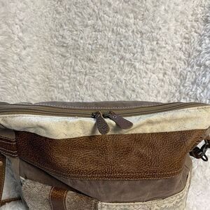Myra Bag canvas & leather Hobo Beige gray & brown shoulder bag Perfect for casual outings.. pre owned in good used condition normal wear clean no tear see all pictures any questions please message. G5