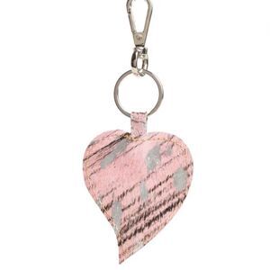 This enchanting hair-on hide leather fob depicts a lovely double heart shape, with a single turquoise stone accent. Metal lobster-style clasp and heavy-duty keyring will keep everything secure.