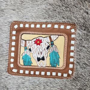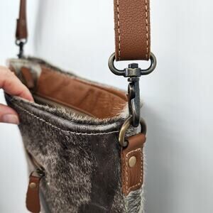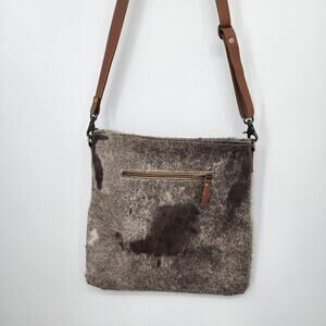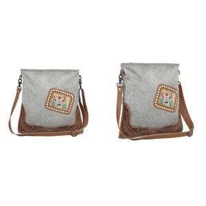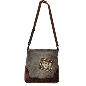 Myra Bags Embroidered Leather Tooled Calf Hair Cross Body Bag Purse Boho