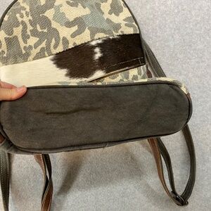Myra Hair On Hide Backpack Leather Canvas Multifabric Adjustable Straps