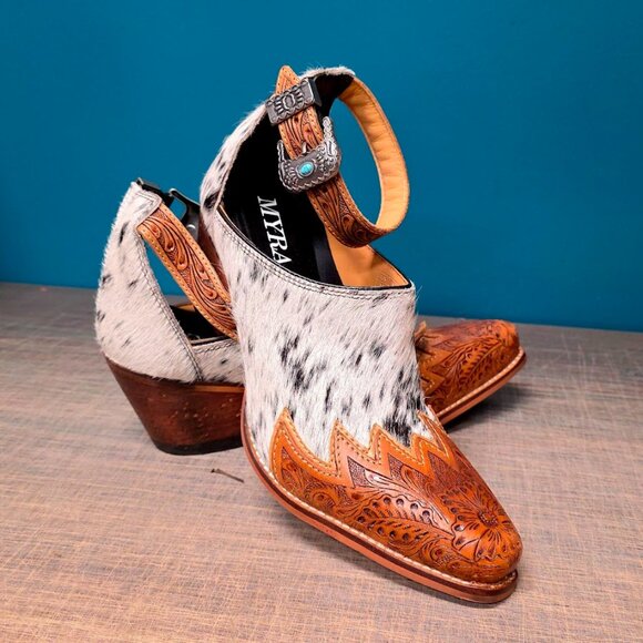 Myra Hair-On Hide Mules Booties Size 11