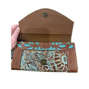 Myra Handbags Stay Positive S-4907 Brown & Turquoise Floral Leather Wallet NWT