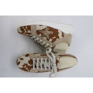 Myra Luster sneakers in cow print size 7 nwot. The studded star applique and lace-up closure add a touch of edginess to these casual shoes. With a standard shoe width and synthetic outsole, these sneakers are perfect for any casual dress occasion.