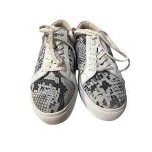 Myra Snake Print Low-Top Sneakers White & Gray Textured Lace-Up Casual Shoes Siz