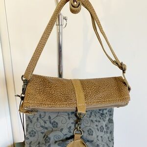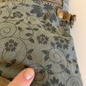 This FOLD OVER stylish cross-body bag offers storage for your tablet and other essentials for a day of traveling or a trek through the urban jungle. The combination of leather and flower print looks chic.