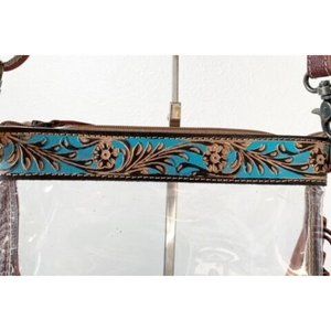Myra Western Fringe Clear Crossbody Stadium Bag - Hand Tooled Leather