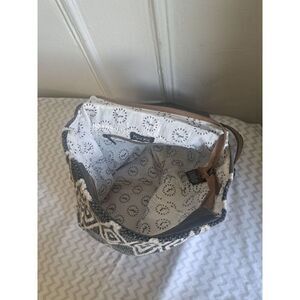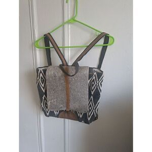 Myra Womens Grizzle Cowhide Upcycled Canvas Leather Gray Backpack Patchwork