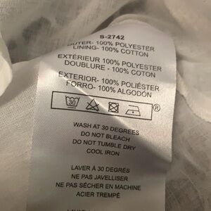 This is a perfect summer dress. Lightweight, lined, adjustable strap, crossover front and ruffle detail in both the front and the back. This has a very flowy uneven hemmed skirt that has lots of movement when you walk and is slightly longer in the back than the front. Dress it up or down. Side zipper, ties in back. New in original packaging, never worn.
