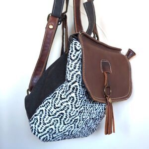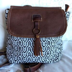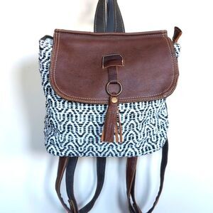 Myra Bag /Leffis Boho Rug/Leather Canvas Tassel Backpack NWOT