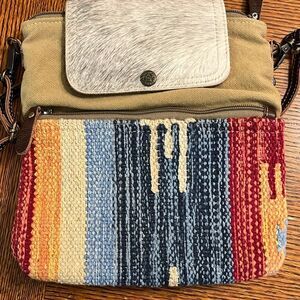 Myra Bag Tan,Red and Blue Crossbody with calf hair Bohemian Style